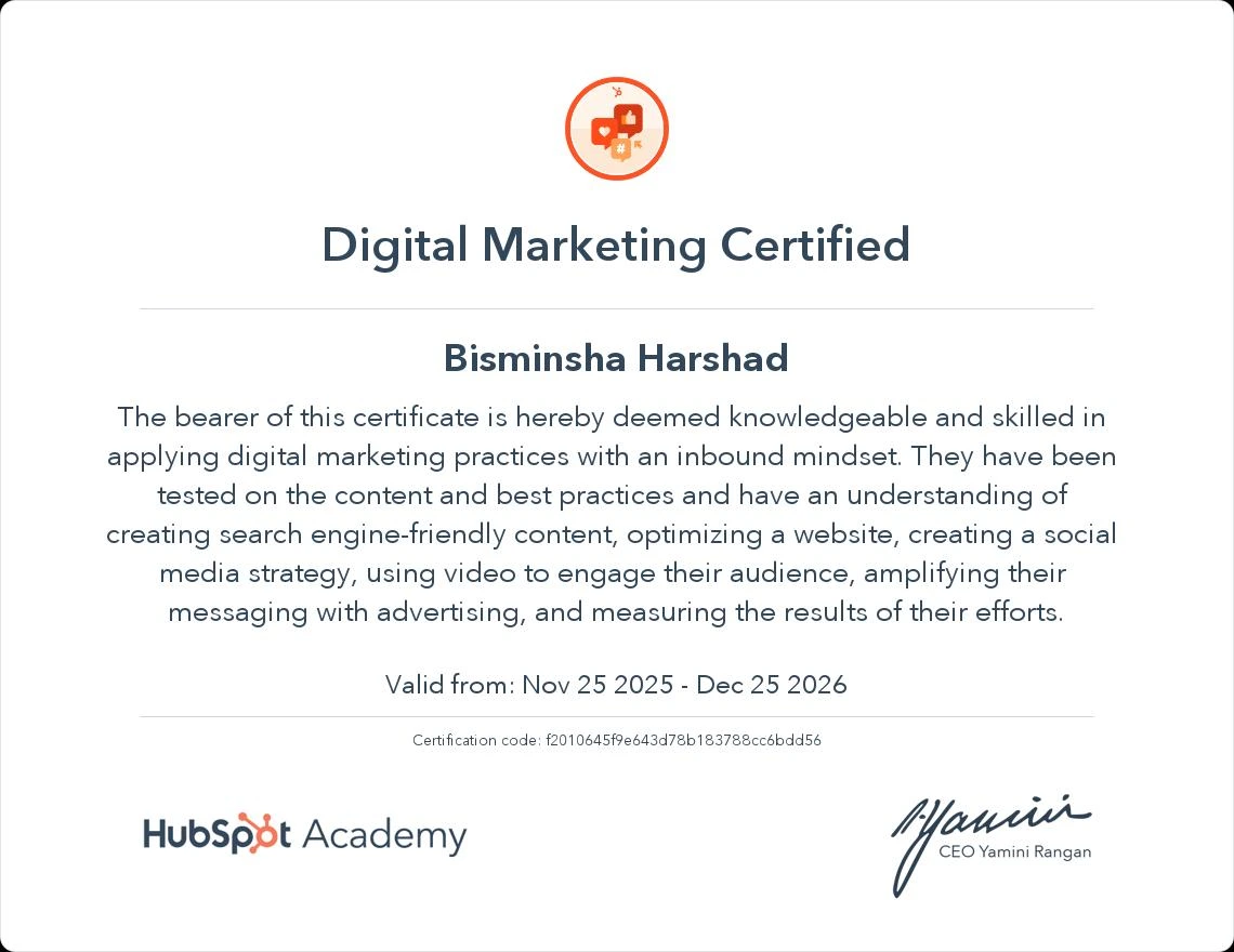 Alongside my freelance work, I’m currently pursuing my MBA, which helps me blend hands-on digital marketing skills with a solid understanding of business strategy and consumer behavior. I help businesses improve their online visibility, attract the right audience, and turn traffic into loyal customers through data-driven strategies, creative storytelling, and measurable results.
